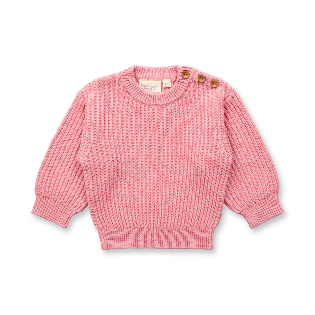 Der Strickpullover von Sense Organics ist ein kuscheliger Begleiter für kühlere Tage und überzeugt mit seiner weichen Rippstruktur aus 100% Baumwolle. Die Holzknöpfe an der Schulter sorgen nicht nur für einen charmanten Look, sondern machen das An- und Ausziehen besonders einfach.