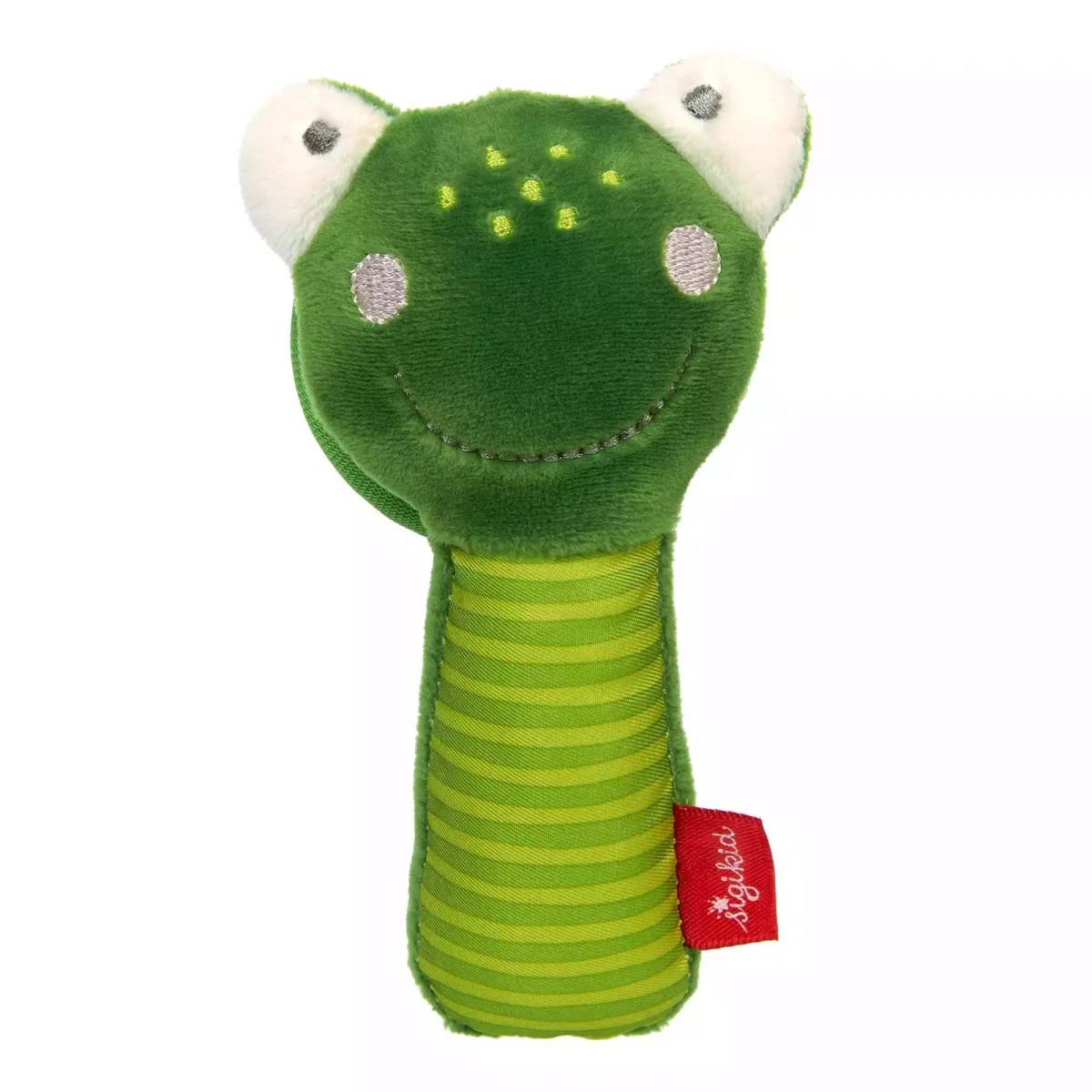 Die softe Stabrassel Frosch von sigikid mit liebevoll gesticktem Gesicht bringt dein Baby zum Staunen und Lachen. Der Spiegel auf der Rückseite lädt zum Spielen und entdecken ein, er lässt sich aber auch problemlos abnehmen, da er mit einem Klettverschluss befestigt ist. Der weiche Plüsch und glatte Stoff aus Microfaser machen den Frosch zu einem tollen Kuschelkameraden.
