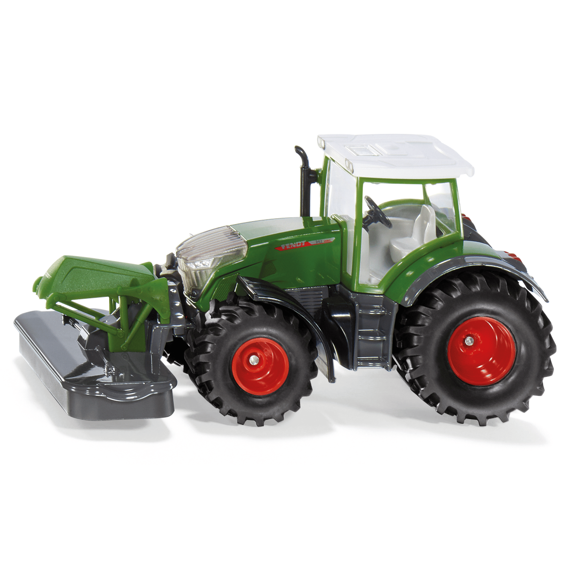 Der Fendt 942 Vario ist das neue Topmodel der Fendt 900er Baureihe. Der Großtraktor wurde zum Tractor of the Year 2020 gewählt. Unter der markanten Fendt-Nase arbeitet ein neu entwickelter MAN-Motor mit über 400 PS. Der Traktor im Maßstab 1:50 fährt bei siku serienmäßig mit einem Slicer-Mähwerk von Fendt vor. Das Scheibenmähwerk ermöglicht eine perfekte, gleichbleibende Schnitthöhe. Das Mähwerk und die Kabine können abgenommen werden. Zudem ist der Fendt 942 Vario mit einer Anhängerkupplung ausgestattet.