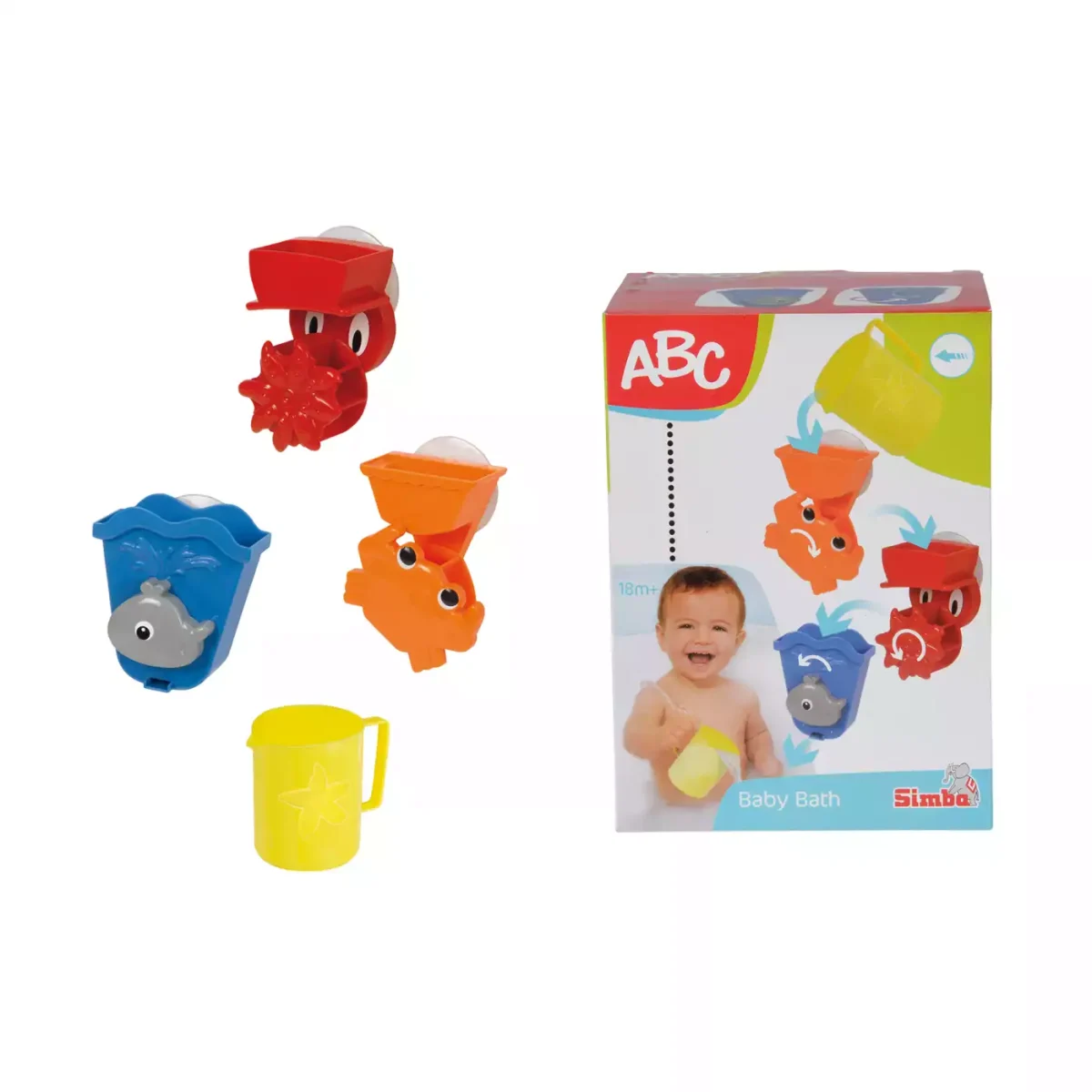 Das Simba ABC Badespielset besteht aus und einem Becher. So wird deinem Kind mit diesem Badespielzeug in der Badewanne nicht mehr langweilig. Die drei Tierchen können mit dem Saugnapf übereinader oder nebeneinander an der Badewanne befestigt werden. Mit dem Becher wird Wasser in die Wasserräder und Trichter geschüttet und der Badespaß beginnt. Das ABC Badespielset von Simba eignet sich für Kinder ab ca. 18 Monaten.