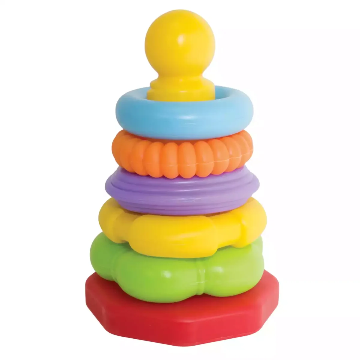 Mit der ABC Ringpyramide wird dein kleiner Schatz einen großen Lern- und Spielespaß bekommen. Die Ringpyramide besteht aus fünf bunten, unterschiedlich geformten Ringen und einem gewölbten Steckboden, der lustig schaukelt. Das Aufstecken der fünf Ringe in der richtigen Reihenfolge macht richtig Spaß und fördert spielerisch die Koordination von Auge und Hand bei deinem Kind. Die Ringpyramide ist ca. 25 cm hoch und für Kinder ab ca. 6 Monaten geeignet.