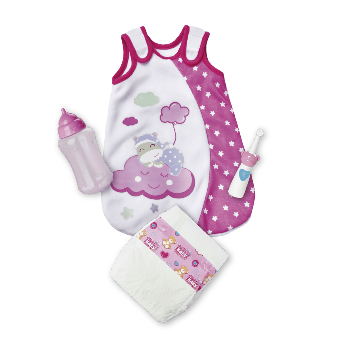 Das Gute-Nacht-Zubehör Laura von Simba ist das perfekte Set für Puppenmamis und -papis, um ihre kleinen Lieblinge auf die Nacht vorzubereiten. Mit dem süßen Schlafsack und den liebevoll gestalteten Accessoires kann dein Kind spielerisch die Schlafenszeit für die Puppe nachstellen. Der Spaß an Rollenspielen wird durch das realitätsnahe Zubehör gefördert.