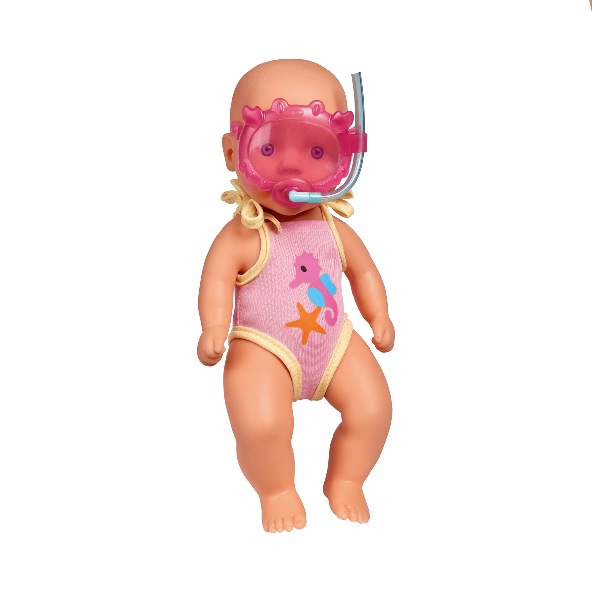 Die entzückende New Born Baby Badepuppe von Simba ist mehr als nur ein Spielzeug – sie wird das Herz deines kleinen Lieblings im Nu erobern! Sie ermöglicht ein fantasievolles Spielerlebnis. Die niedliche rosa Schwimmbrille, der Schnorchel und der Badeanzug mit süßem Seepferdchen- und Seesternmotiv, welcher an den Schultern zusammengebunden und auch ausgezogen werden kann, laden zu spannenden Abenteuern im Wasser ein. Mit einer Größe von ca. 30cm ist sie perfekt für die kleinen Kinderhände ab 3 Jahren geeignet.