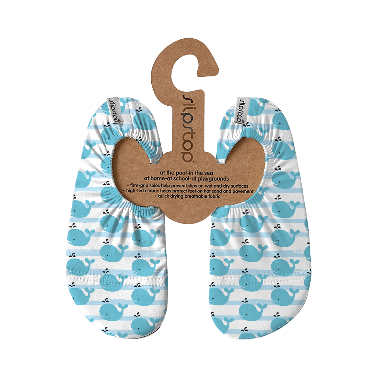 Einfach hineinschlüpfen und schon ist dein kleiner Liebling startklar für den Sommer. Ob am Strand oder im Schwimmbad, mit den Slipstop Badeschuhen im zuckersüßen Wal-Design Doris ist dein Kind bestens für die Badesaison gerüstet.