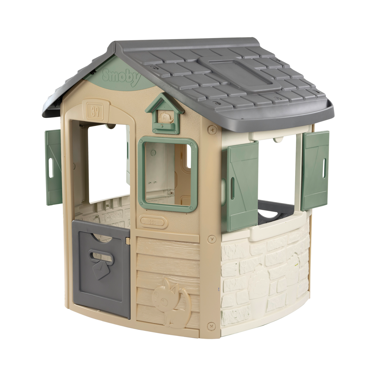 Das Spielhaus Jura Lodge von Smoby bietet deinem Schatz ab ca. 2 Jahren einen zauberhaften Spiel- und Rückzugsort. Die klappbaren Türen mit Briefschlitz und die Fensterläden, die sich nach Belieben öffnen und schließen lassen, verleihen diesem Spielhaus eine besondere Note. Oben an der Fassade befindet sich außerdem ein kleines Vogelhäuschen, das die Fantasie deines Kindes anregt.