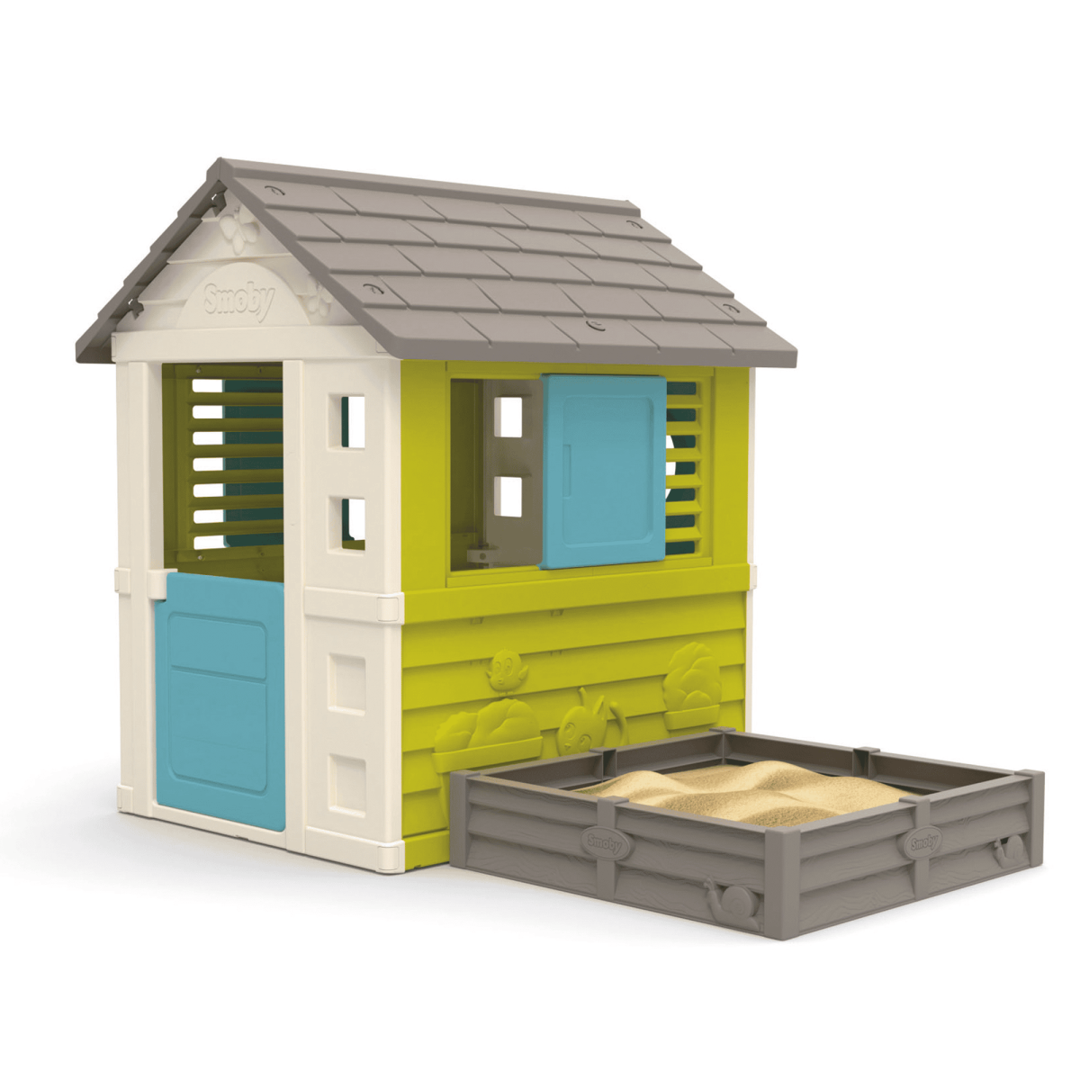 Für noch mehr Spielmöglichkeiten kommt das Spielhaus mit einem 2-in-1 Sandkasten & Pflanzbeet: entweder können die Kids Sandburgen bauen, oder einen Gemüsegarten anpflanzen und so spielerisch die Welt der Gartenarbeit kennenlernen. Der Sandkasten lässt sich ebenso kinderleicht aufbauen, denn es müssen nur die vier Seitenwände zusammengesteckt werden. Eine Bodenplane wird mitgeliefert.