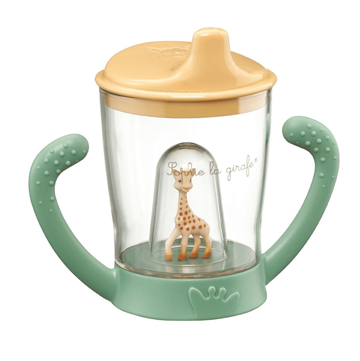 Diese süße Trinklerntasse von Sophie la girafe® erleichtert deinem Baby den Übergang vom Fläschchen zur Tasse. Egal wie herum die Trinklerntasse gehalten wird, sie ist in jeder Position auslaufsicher. Der ergonomische Trinkaufsatz unterstützt den natürlichen Saugreflex. Das Auslaufschutzsystem mit Ventil ermöglicht zu trinken, ohne zu kleckern und der Deckel gewährleistet perfekte Hygiene. Zwei strukturierte Griffe erleichtern das Halten. Für viel Spaß bei deinem Baby ist gesorgt, wenn Sophie aus dem Getränk auftaucht.