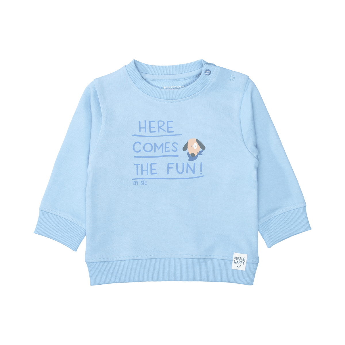 Das Sweatshirt Hund von Staccato ist ein fröhliches Oberteil für kleine Entdecker. Hergestellt aus 100% weicher Baumwolle, bietet es ein angenehmes Tragegefühl und sorgt für optimalen Komfort. Der verspielte Hunde-Print und der Schriftzug „HERE COMES THE FUN“ machen das Shirt zu einem echten Hingucker. Dank der praktischen Druckknöpfe an der Schulter ist das An- und Ausziehen kinderleicht.