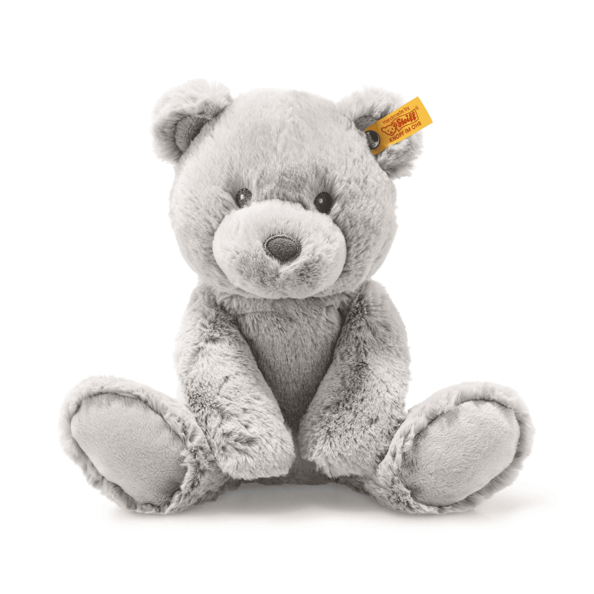 Das Kuscheltier Bearzy Teddybär von Steiff ist so gestaltet, dass er dank eines Granulatsäckchens im Gesäß ganz prima sitzen kann – immer bereit, um neben seinem besten Freund Platz zu nehmen. Mit seinen liebevoll gestickten Augen und der Nase zaubert er jedem Kind ein Lächeln ins Gesicht.