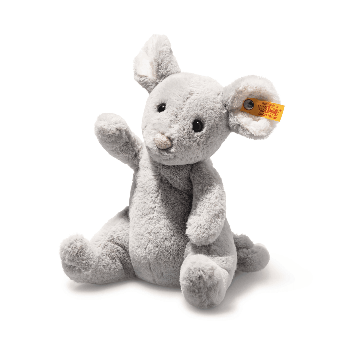 Kuscheltier Cheesy Maus von Steiff – die kleine Maus zum Liebhaben! Mit ihrem anschmiegsamen, hellgrauen Plüsch und der niedlichen Haltung, als würde sie nach einem Stück Käse fragen, erobert Cheesy die Herzen im Sturm. Sie ist ca. 19 cm groß und perfekt geeignet für kuschelige Momente. Dank des Granulatsäckchens im Hinterteil sitzt sie stabil und sieht immer bezaubernd aus, egal ob sie auf dem Regal oder im Arm deines Kindes sitzt. Durch das Halten und Streicheln von Cheesy Maus wird das taktile Empfinden gefördert. Die weiche Textur lädt dazu ein, sie zu erkunden, was die Feinmotorik der Kleinen unterstützt und sensorische Reize stimuliert. Ein treuer kleiner Freund, der in jedem Kinderzimmer willkommen ist!