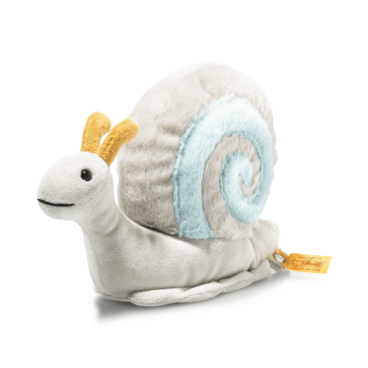 Das Kuscheltier Snailly Schnecke von Steiff beweist, dass Schnecken nicht nur faszinierende Tiere sind, sondern auch wunderbar zum Schmusen geeignet sind. Dabei fördert das Halten und Streicheln von Snailly das taktile Empfinden und unterstützt die Entwicklung der Feinmotorik. Der weiche Plüsch lädt dazu ein, die Schnecke genau zu erkunden und bietet wertvolle sensorische Reize, die die Sinne deines Kindes anregen. Mit ihrem weichen Plüsch und einer handlichen Größe von ca. 20 cm ist Snailly besonders weich und anschmiegsam – ideal zum Kuscheln und Liebhaben.