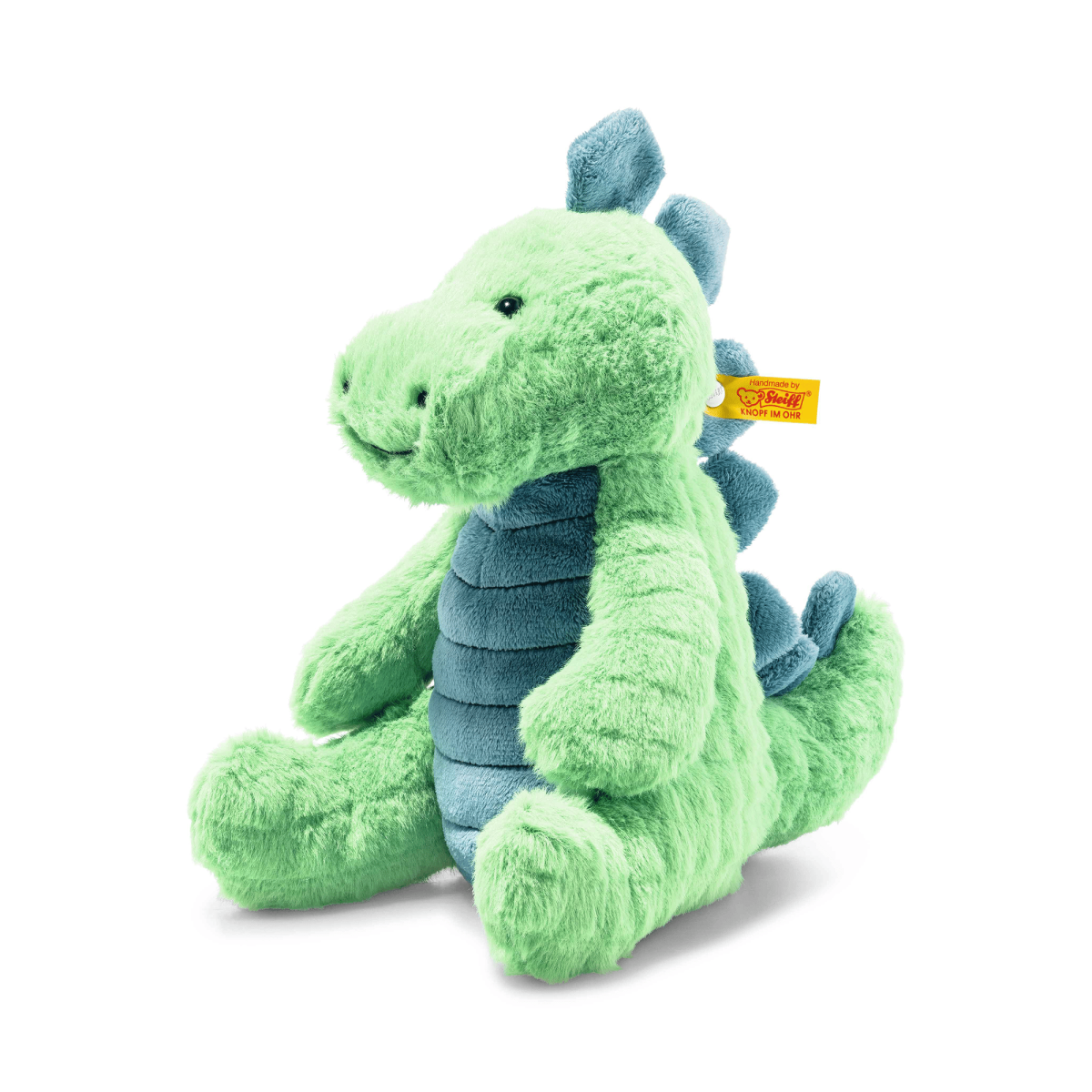 Kuscheltier Spott Stegosaurus von Steiff – ein kräftiger Dinosaurier für kleine Abenteurer! Der ca. 28 cm große Spott Stegosaurus ist aus kuschelweichem Plüsch in den Farben Grün und Petrol gefertigt und wirkt durch den strukturierten Stoff besonders eindrucksvoll. Die aufwendigen Stickereien an Mund und Nase sowie die petrolfarbenen Drachenzacken auf seinem Rücken machen ihn zu einem echten Hingucker.