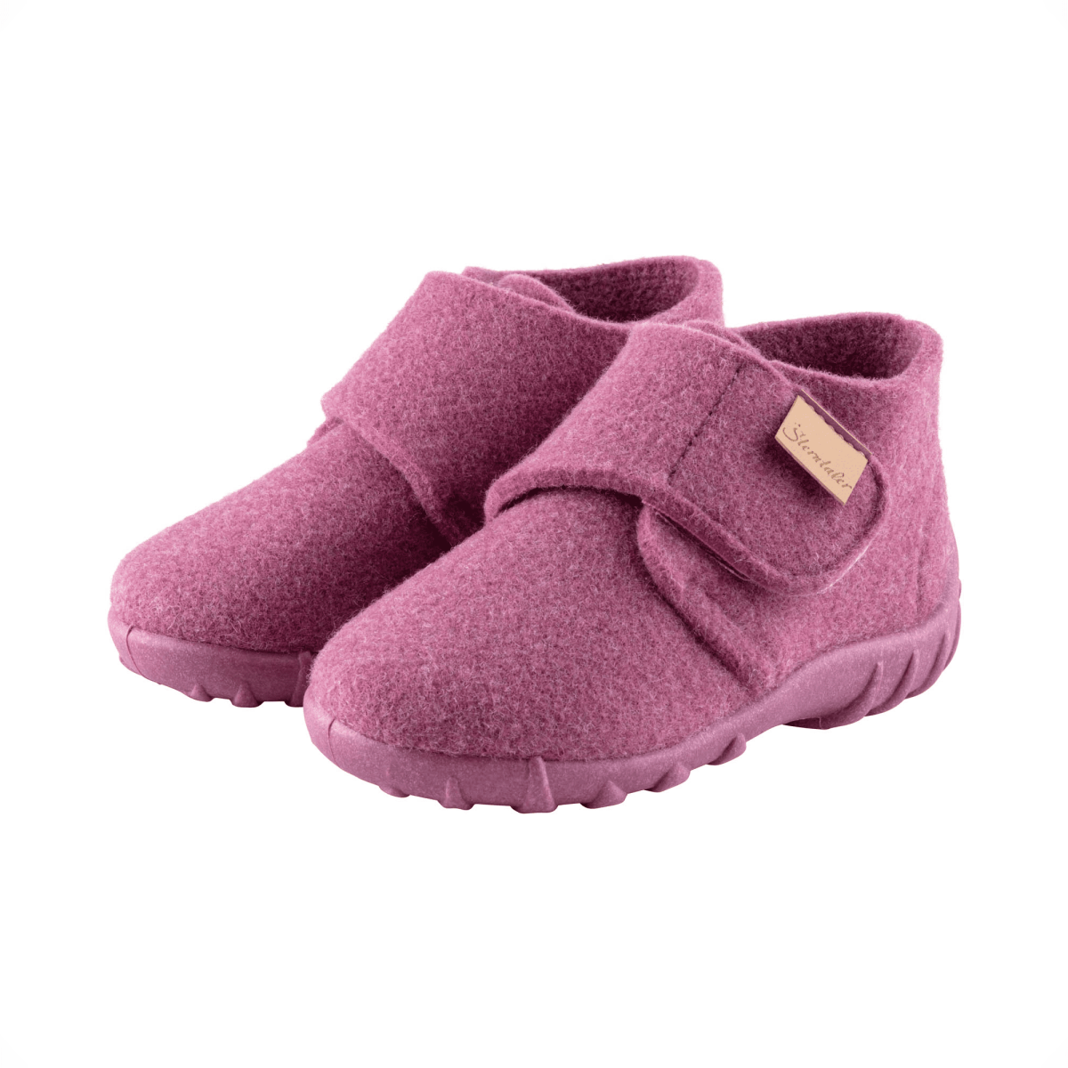 Die Hausschuhe von Sterntaler aus hochwertigem Wollfilz halten kleine Füße angenehm warm und sorgen dank der rutschfesten Sohle für sicheren Halt. Das schlichte und zeitlose Design macht die Hausschuhe zu einem idealen Begleiter für kalte Herbst- und Wintertage, während der praktische Klettverschluss das An- und Ausziehen kinderleicht gestaltet.