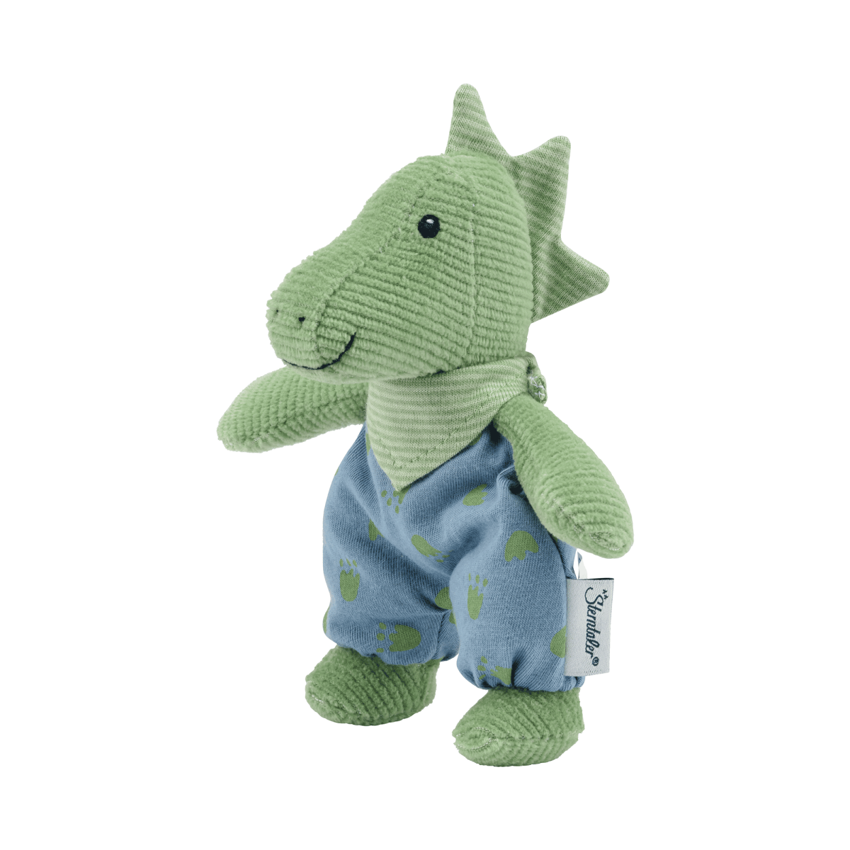 Dino Rexi von Sterntaler ist der perfekte Kuschelfreund für dein Kind. Er besteht aus weichem Cord und Jersey und liegt dadurch besonders angenehm in kleinen Händen. Dank seiner kompakten Größe von ca. 16 x 15 x 7 cm ist er ideal für die ersten Greifversuche geeignet. Dabei unterstützt dieses Kuscheltier die sensorische Entwicklung deines Babys: Die unterschiedlichen Texturen fördern den Tastsinn, während das Greifen und Halten die Feinmotorik und Hand- und Augenkoordination trainieren. Mit seinem freundlichen Gesicht und den weichen Stoffen schenkt Rexi Geborgenheit und begleitet dein Baby liebevoll beim Einschlafen und Spielen.
