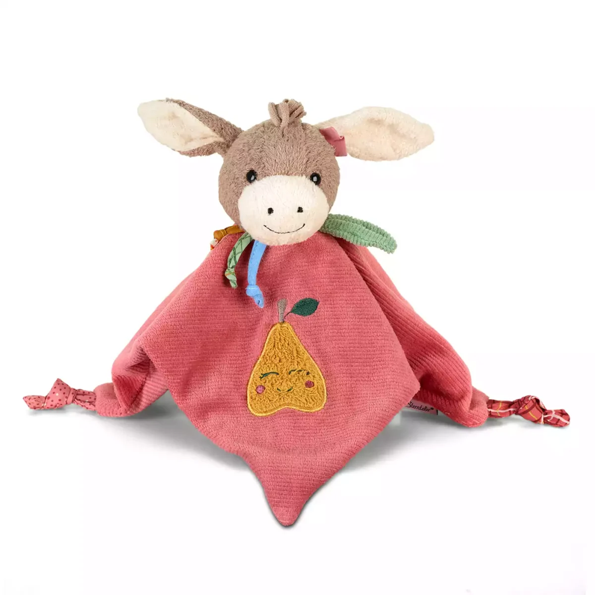 Das fröhliche und kuschelweiche Schmusetuch Esel Emmily von Sterntaler wird deinen kleinen Liebling ab dem ersten Tag begleiten. Liebevolle Details mit Zipfel, Knoten und die niedliche Birnenapplikation werden deinem Kind viel Spaß bereiten.