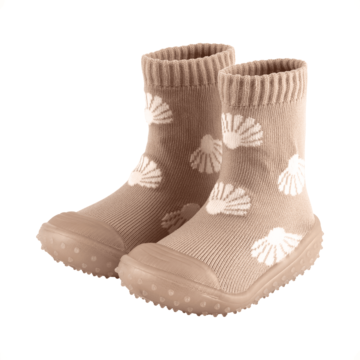 Die Socken Muscheln von Sterntaler sind die perfekten Haussocken für kleine Strandliebhaber. Mit der rutschfesten, profilierten Gummisohle bieten sie sicheren Halt auf glatten Böden. Das niedliche Muschel-Motiv und die natürlichen Farben machen die Socken zu einem echten Hingucker. Dank des elastischen, schnelltrocknenden Materials sind sie besonders bequem und sorgen für ein angenehmes Tragegefühl.