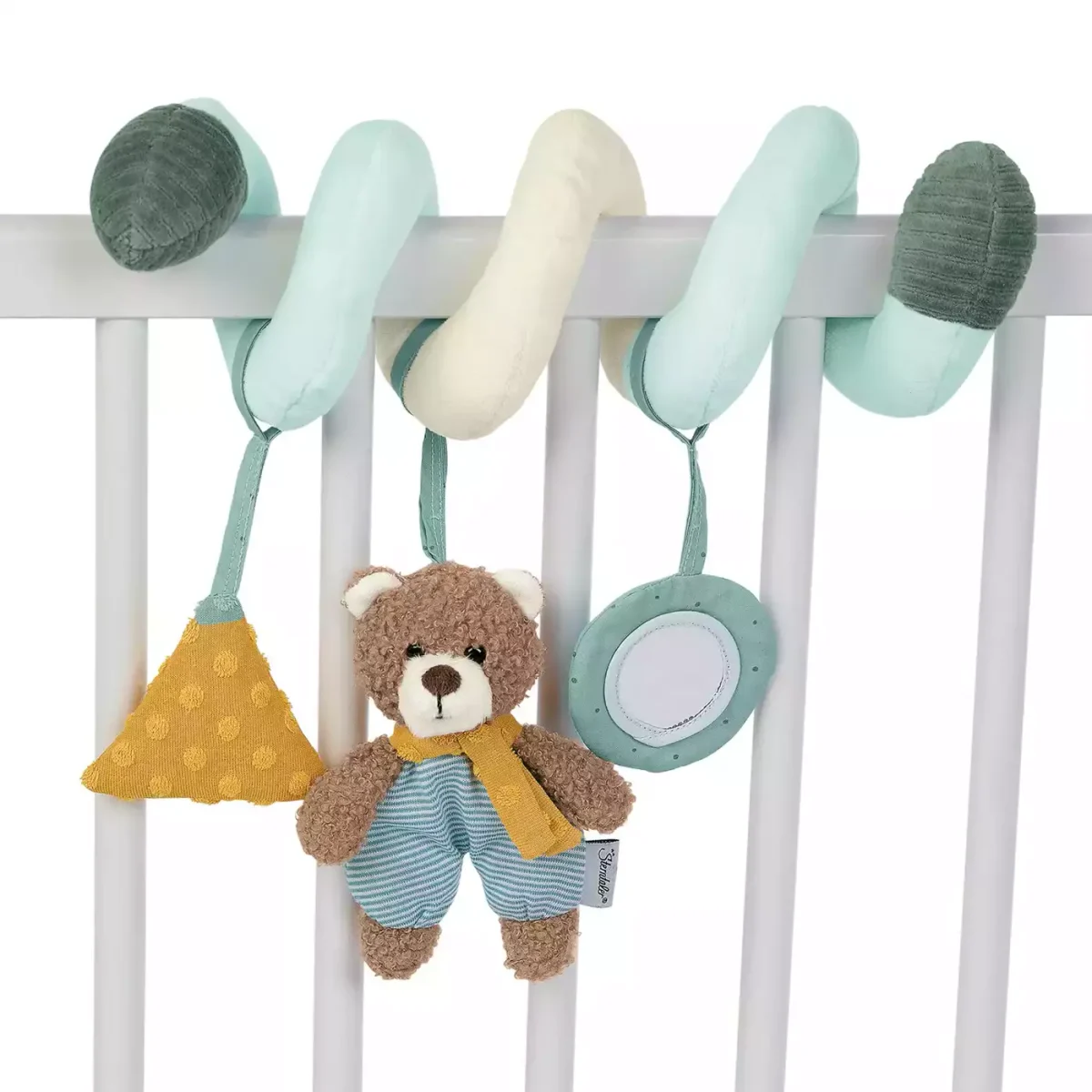Mit dieser Spielzeugspirale Ben von Sterntaler hat dein Liebling alles in greifbarer Nähe. Bär Ben aus Flauschstoff, Softvelour und Jersey mit Rassel und Spiegel regt zum Greifen, Spielen und Entdecken an. Dank der praktischen Spiralfunktion lässt sich das Spielzeug vielseitig befestigen.