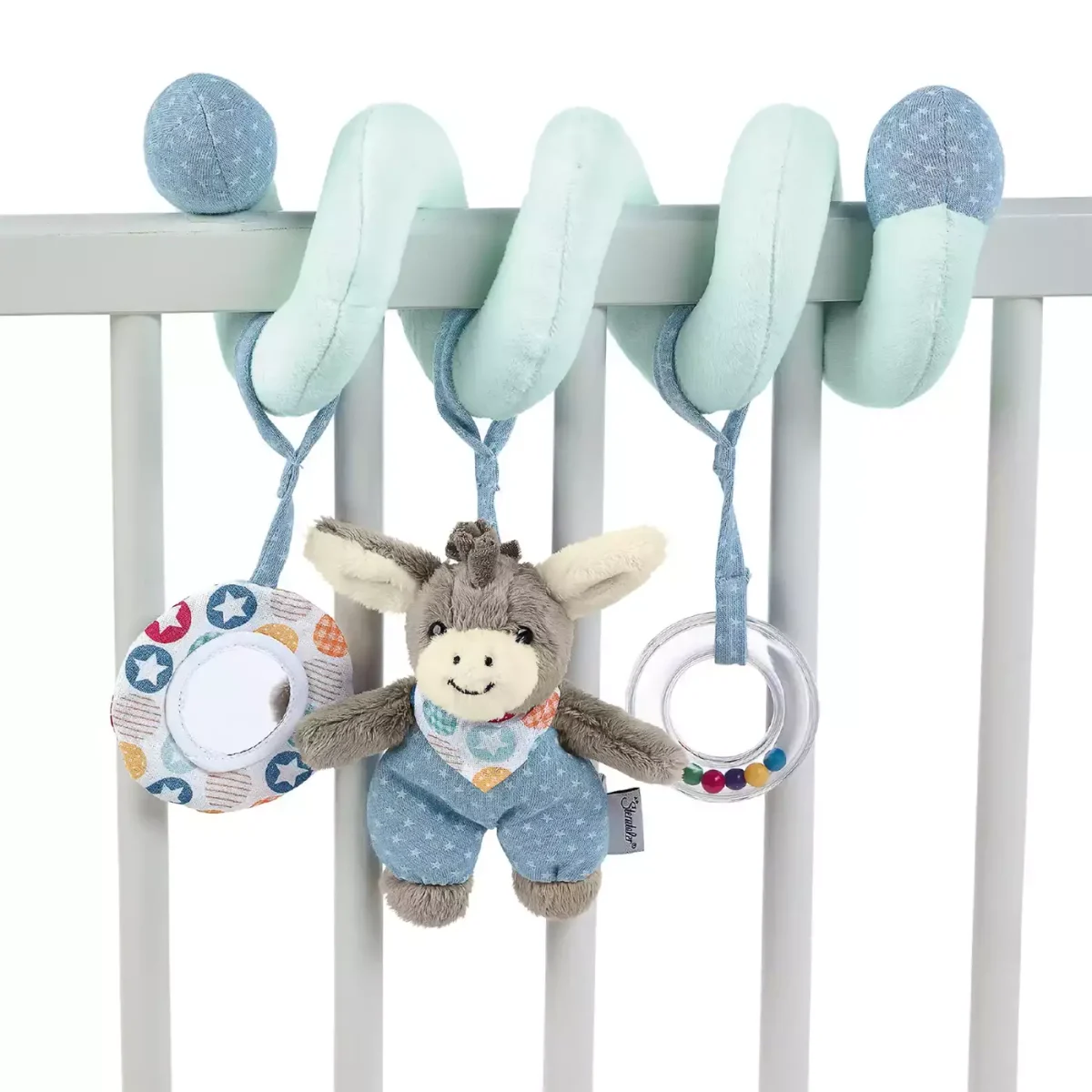Mit dieser Spielzeugspirale Emmi von Sterntaler hat dein Liebling alles in greifbarer Nähe. Esel Emmi aus Flauschstoff, Softvelour und Jersey mit Rasseln und Spiegel regt zum Greifen, Spielen und Entdecken an. Dank der praktischen Spiralfunktion lässt sich das Spielzeug vielseitig befestigen.