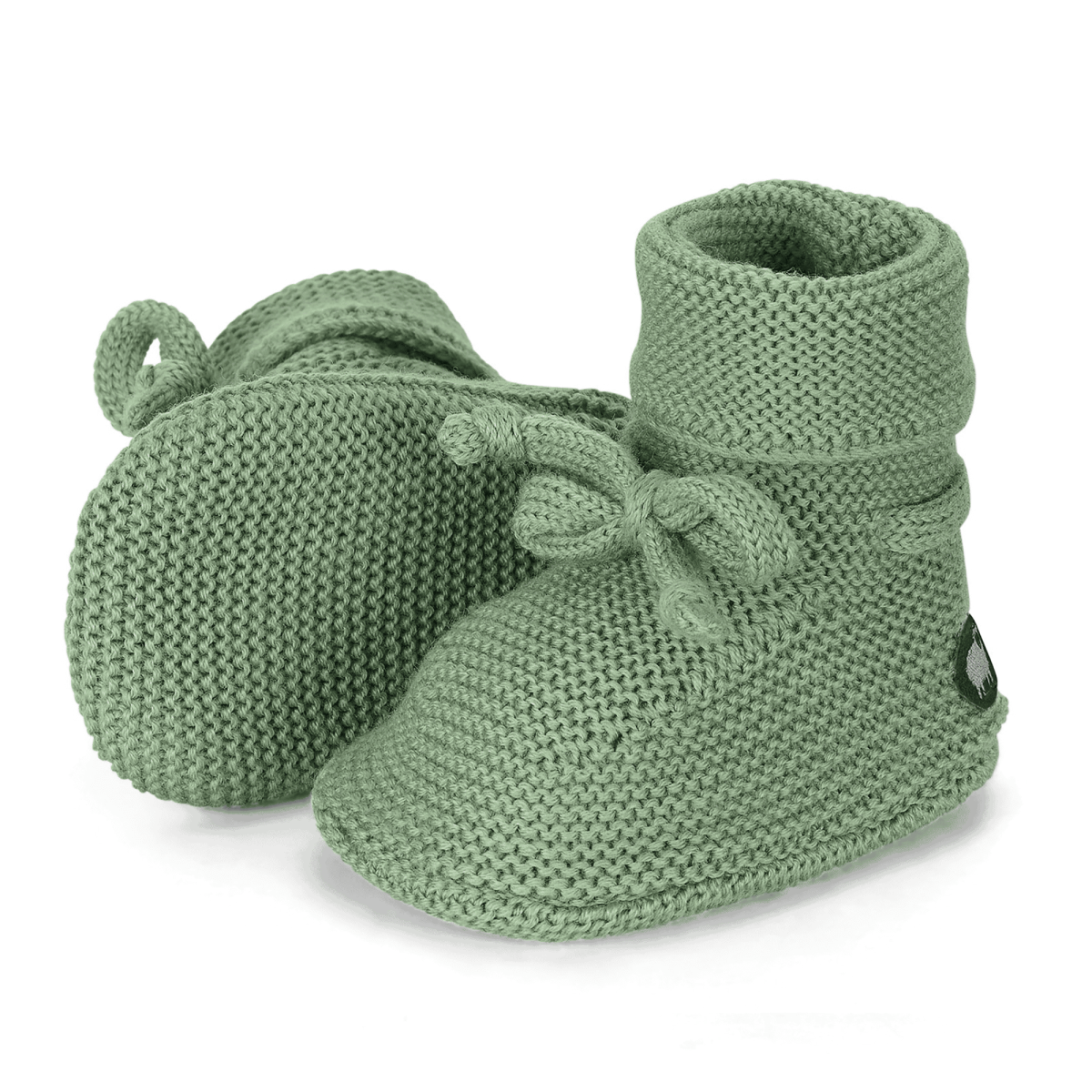 Diese grünen Sterntaler Strick-Schuhe mit Weitenregulierungsbändern können praktisch das ganze Jahr getragen werden. Die Erstlingsschuhe aus 100 % Wolle (Merinowolle) können mit den weichen Bändern individuell am Knöchel deines kleinen Lieblings gebunden werden. Ein niedlicher Hingucker ist zudem das kleine, seitliche Schäfchen Patch an den Wagenschuhen.