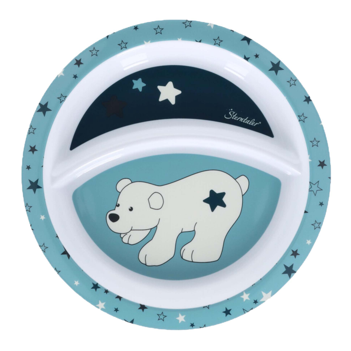 Der robuste Teller mit Unterteilung von Sterntaler hilft deinem kleinen Schatz dabei, selbstständig das Essen zu lernen. Mithilfe der praktischen Unterteilung in der Tellermitte kannst du bequem verschiedenen Speisen voneinander trennen. Ein rutschfester Silikonring an der Unterseite des Geschirrs sorgt dafür, dass es nicht vom Tisch rutscht.