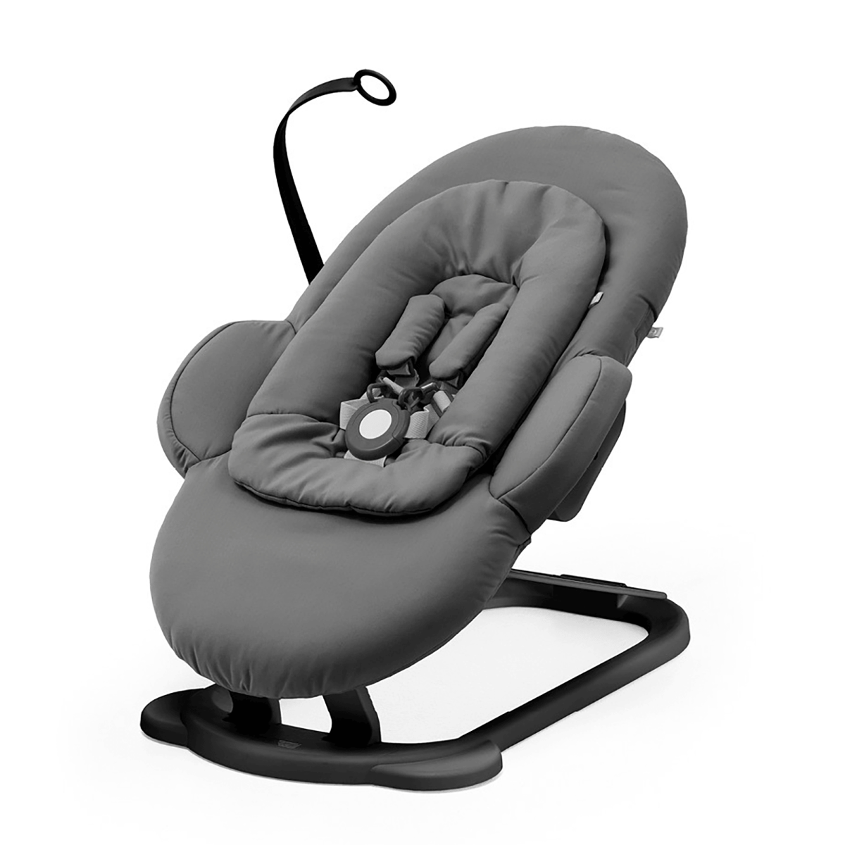 Die weich gepolsterte Wippe mit ihrer einzigartigen Schaukelbewegung gibt dem Baby das Gefühl, in Mamas Armen zu liegen und geschaukelt zu werden. Die Wippe kann am Boden stehen oder ganz einfach auf dem Stokke® Steps™ Stuhl befestigt werden. Der Bouncer ermöglicht dem Kind, eigenständig zu wippen. Der Sitzverkleinerer sorgt zusätzlich für die richtige Haltung und Komfort des neugeborenen Babys. An dem abnehmbaren Spielzeughalter kann das Lieblingsspielzeug des Neugeborenen aufgehangen werden. Außerdem kann die Wippe für eine 7-jährige Garantie bei Stokke® registriert werden.