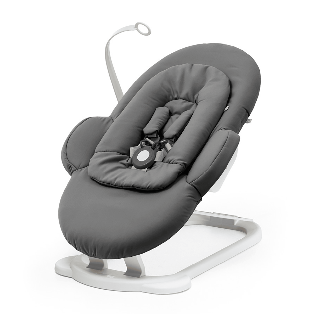 Die weich gepolsterte Wippe mit ihrer einzigartigen Schaukelbewegung gibt dem Baby das Gefühl, in Mamas Armen zu liegen und geschaukelt zu werden. Die Wippe kann am Boden stehen oder ganz einfach auf dem Stokke® Steps™ Stuhl befestigt werden. Der Bouncer ermöglicht dem Kind, eigenständig zu wippen. Der Sitzverkleinerer sorgt zusätzlich für die richtige Haltung und Komfort des neugeborenen Babys. An dem abnehmbaren Spielzeughalter kann das Lieblingsspielzeug des Neugeborenen aufgehangen werden. Außerdem kann die Wippe für eine 7-jährige Garantie bei Stokke® registriert werden.