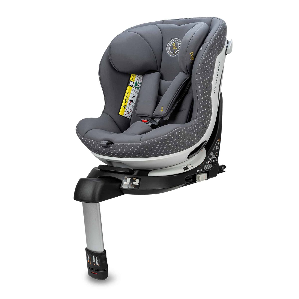 Wer möchte, kann den Autokindersitz aber auch schon früher – genauer gesagt: ab einer Körpergröße von 76 cm – in Fahrtrichtung drehen. Wobei der Richtungswechsel dank der praktischen 360°-Drehfunktion ebenso einfach ist wie das Ein- und Aussteigen. Was durch die Magnethalterungen für die Gurte übrigens noch optimiert wird.
