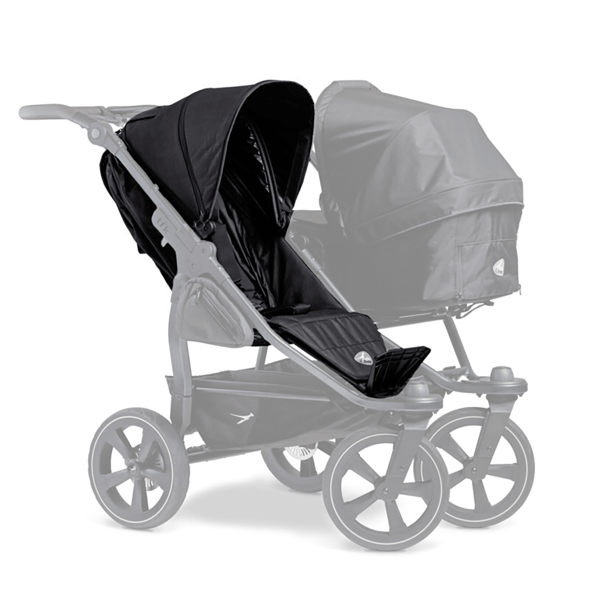 Ob ihr den Duo2 für Zwillinge oder Geschwister unterschiedlichen Alters benötigt: Mit dem Duo2 Sport-Aufsatz kann der Zwillings- und Geschwisterwagen von tfk bis ins jeweils sechste Lebensjahr eurer Kinder genutzt werden. Somit könnt ihr die Nutzungsdauer, die der Duo2 mit Kombieinheit bietet (= 0 bis 36 Monate), nahezu verdoppeln. Das heißt, für die gesamte Kinderwagen- & Buggyzeit braucht ihr nur dieses eine Modell. Eine Anschaffung also, die sich garantiert lohnt.
