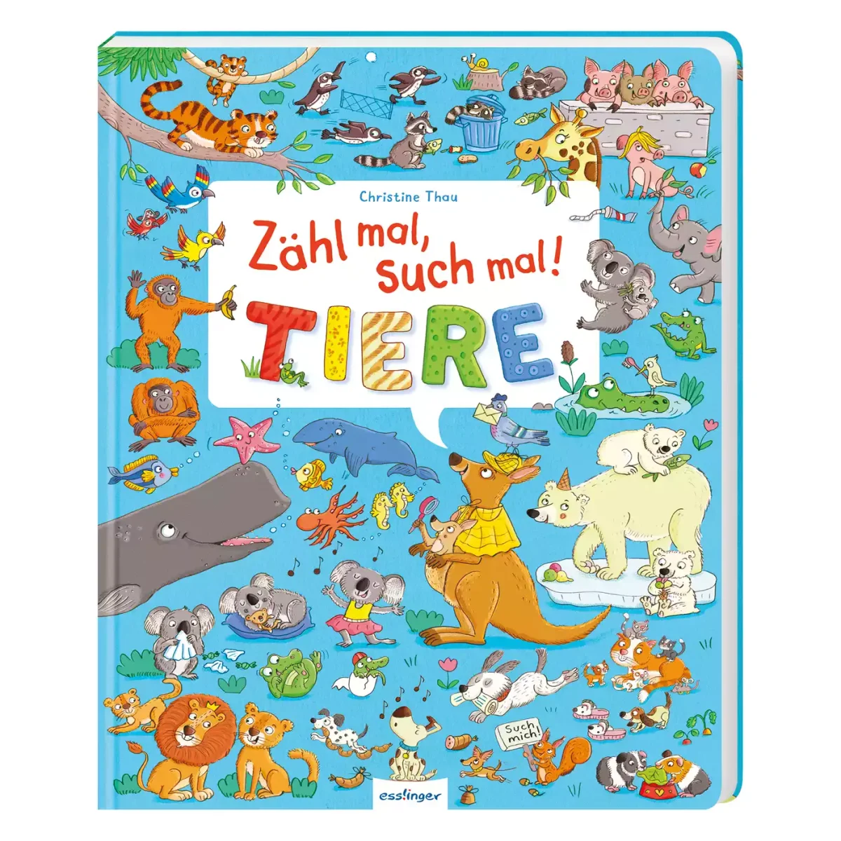 In dem Wimmelbuch Zähl mal, such mal! Tiere von Thienemann findet dein Kind einen tierischen Such- und Zählspaß. Suchen, Zählen, Vergleichen, Entdecken – wer genau hinschaut, kann alle Fragen und Aufgaben lösen: Wie viele Katzen haben ein schwarzes Ohr? Wo ist die Giraffe mit dem Pflaster? Finde drei Biber mit Badehose!