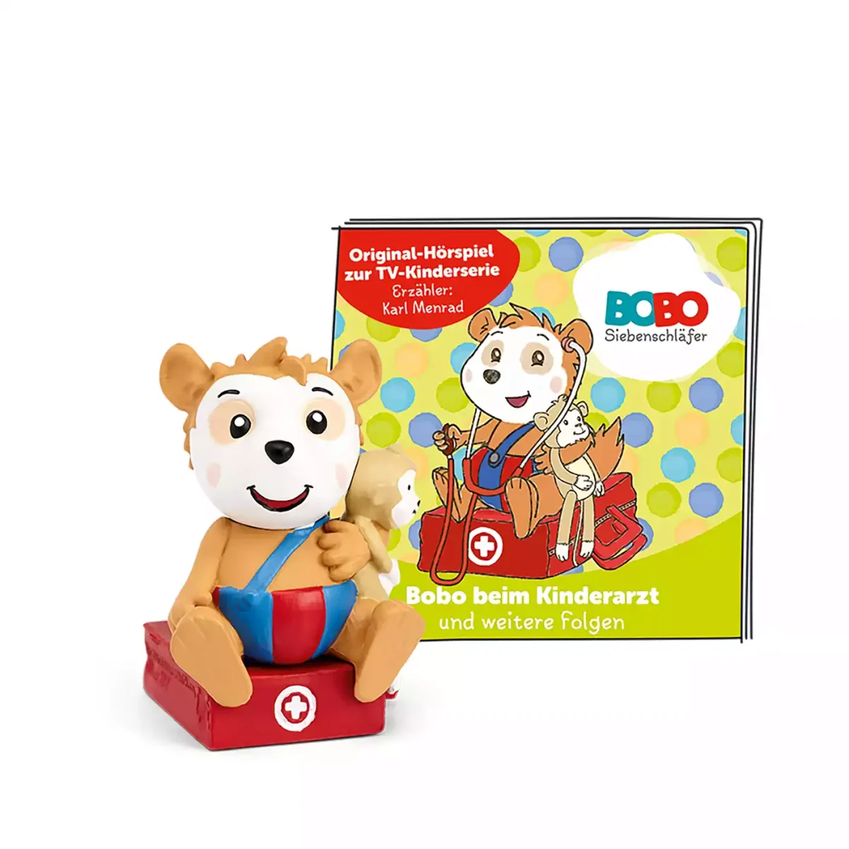 Der Tonie Bobo Siebenschläfer – Bobo beim Kinderarzt ist das Original-Hörspiel zur beliebten TV-Kinderserie. Mit der Hörfigur kann die Toniebox bedient werden. Wird der Tonie Bobo Siebenschläfer auf die Box gestellt, beginnen die Geschichten. Auf dem Tonie befinden sich sieben Hörspiele zu Bobo dem Siebenschläfer. Die tollen Tonies können aber auch fleißig gesammelt werden und sind zum Spielen geeignet.