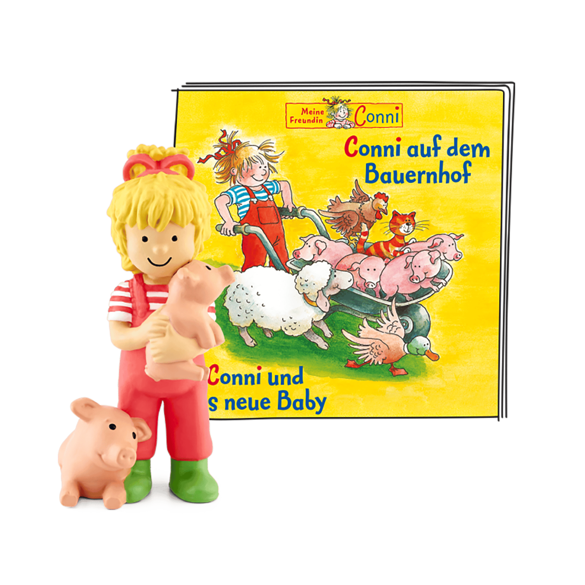 Handbemalte Hörfigur für die Toniebox „Conni auf dem Bauernhof / Conni und das neue Baby“.