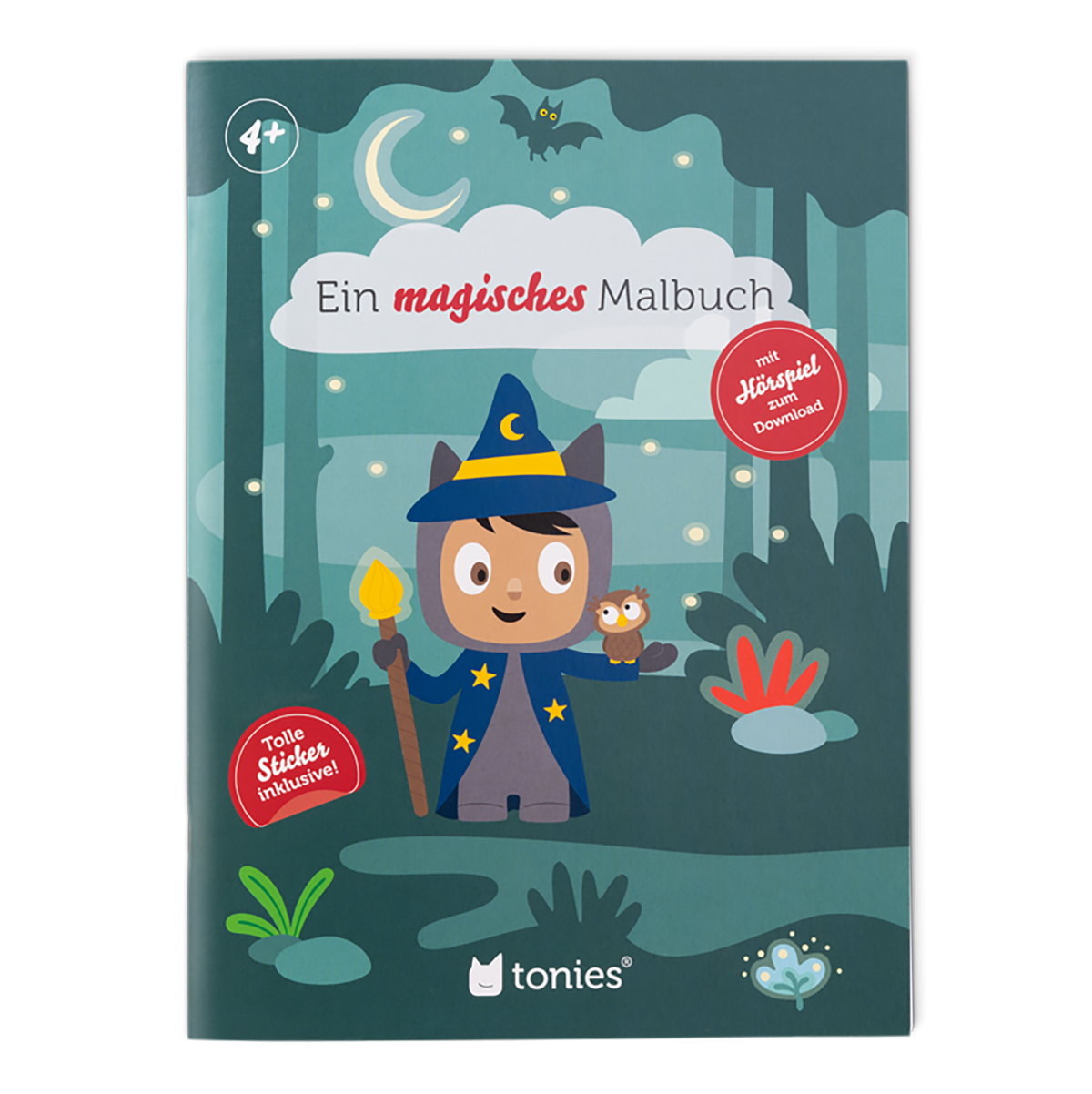 Begleitet den kleinen Zauberer Felix und seine beste Freundin die Eule Ella bei seinen fantastischen Abenteuern und lasst der Kreativität in magischen Ausmalbildern passend zur Hörspiel-Geschichte „Freundschaftstag im Zauberwald“ freien Lauf: Neben der spannenden Geschichte für den Kreativ-Tonie warten noch viele bunte Sticker für tolle Kunstwerke auf dein Kind ab 4 Jahren. Einfach den QR-Code im Malbuch scannen, Hörspiel in der Mediathek herunterladen und verzaubern lassen.