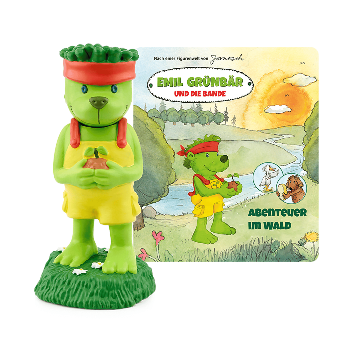 Exklusiv für tonies® wurde ein besonderes Mitglied des bunten Janosch-Kosmos neu belebt: Emil Grünbär, ein gutmütiger Typ, dem sehr viel an der Natur und ihrem Erhalt gelegen ist. Gemeinsam mit der eleganten Dolli Graugans und dem schläfrigen Hund Rüdi von Lieberbaum macht er sich auf, weil ihn das Abenteuer kitzelt. Dabei stellen sie fest, dass sie – nicht zuletzt wegen uns Menschen – einiges im Wald in Ordnung bringen müssen.