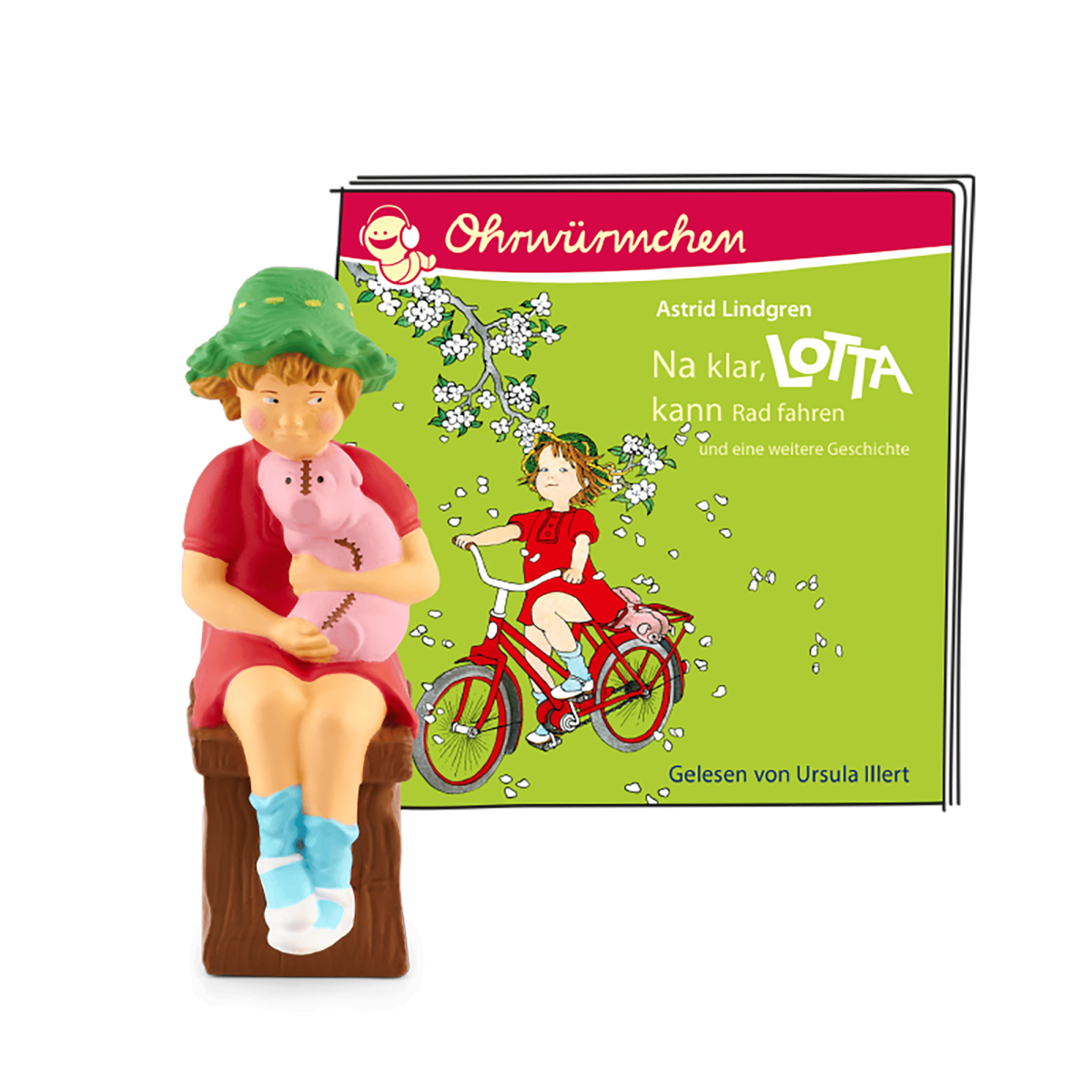 Handbemalte Hörfigur für die Toniebox „Lotta – Na klar, Lotta kann Rad fahren / Lotta zieht um“.