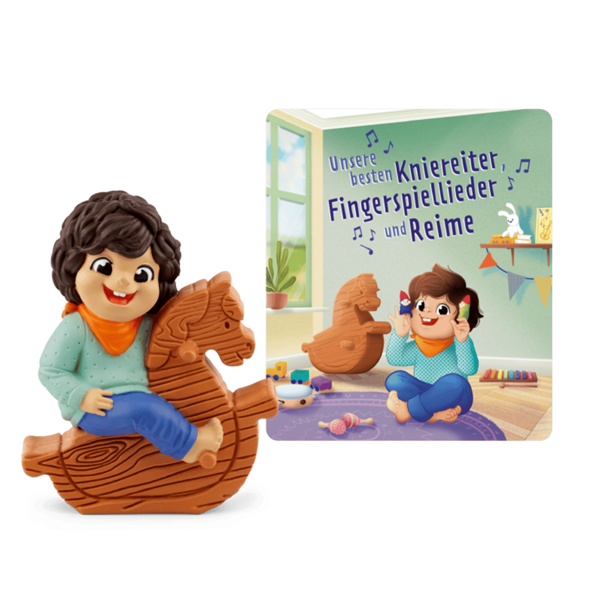 Handbemalte Hörfigur für die Toniebox „Unsere besten Kniereiter, Fingerspiellieder und Reime“ für Kinder ab 3 Jahren.