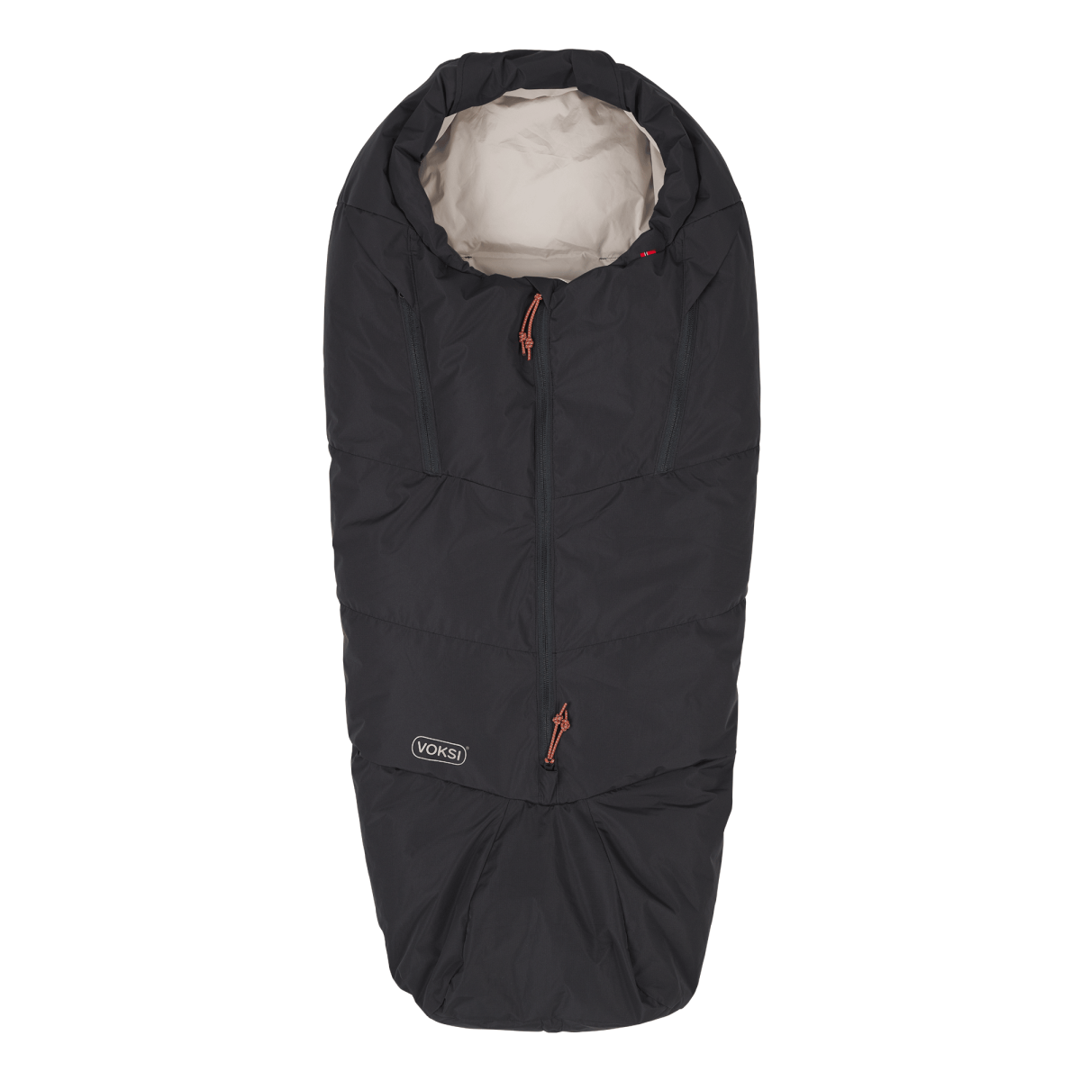 Die Materialien dieses Winterfußsacks können mit einer leichten und weichen Daunenjacke verglichen werden, deren weiche Stoffe sich leicht um den Körper des Kindes wickeln lassen. Die Füllung besteht aus hochwertigen Daunen (90/10) und der Fußsack ist mit einer einzigartigen Boxkonstruktion ausgestattet, die das Eindringen von Kälte verhindert. Die Luft zwischen den Daunenfasern sorgt für maximale Isolierung, daher sollte der Voksi® Fußsack vor Gebrauch geschüttelt und ohne Kompression luftig gelagert werden. Im Lieferumfang ist ein Kompressionsbeutel enthalten, sodass der Fußsack klein gemacht werden kann, was ideal auf Reisen ist.