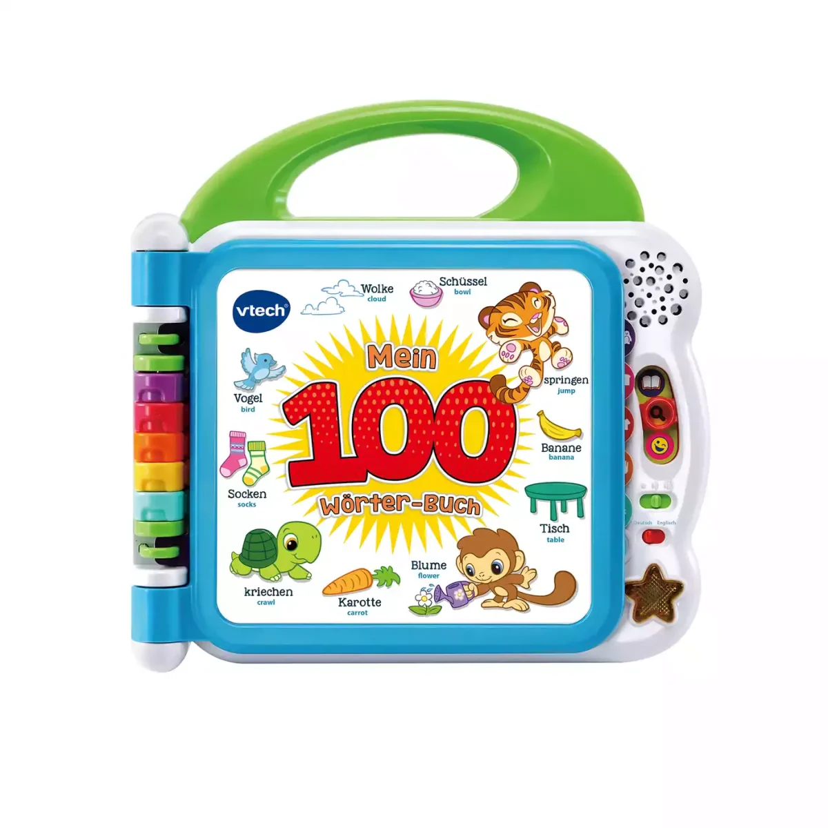 Mein 100-Wörter-Buch von Vtech ist ein lustiges und interaktives bilinguales Bilderbuch. Es ermutigt deinen kleinen Schatz zum Erlernen der ersten englischen Wörter. Tippt dein Kind auf die einzelnen Elemente einer Seite, lernt es neue Wörter und entdeckt lustige Fakten und Geräusche.
