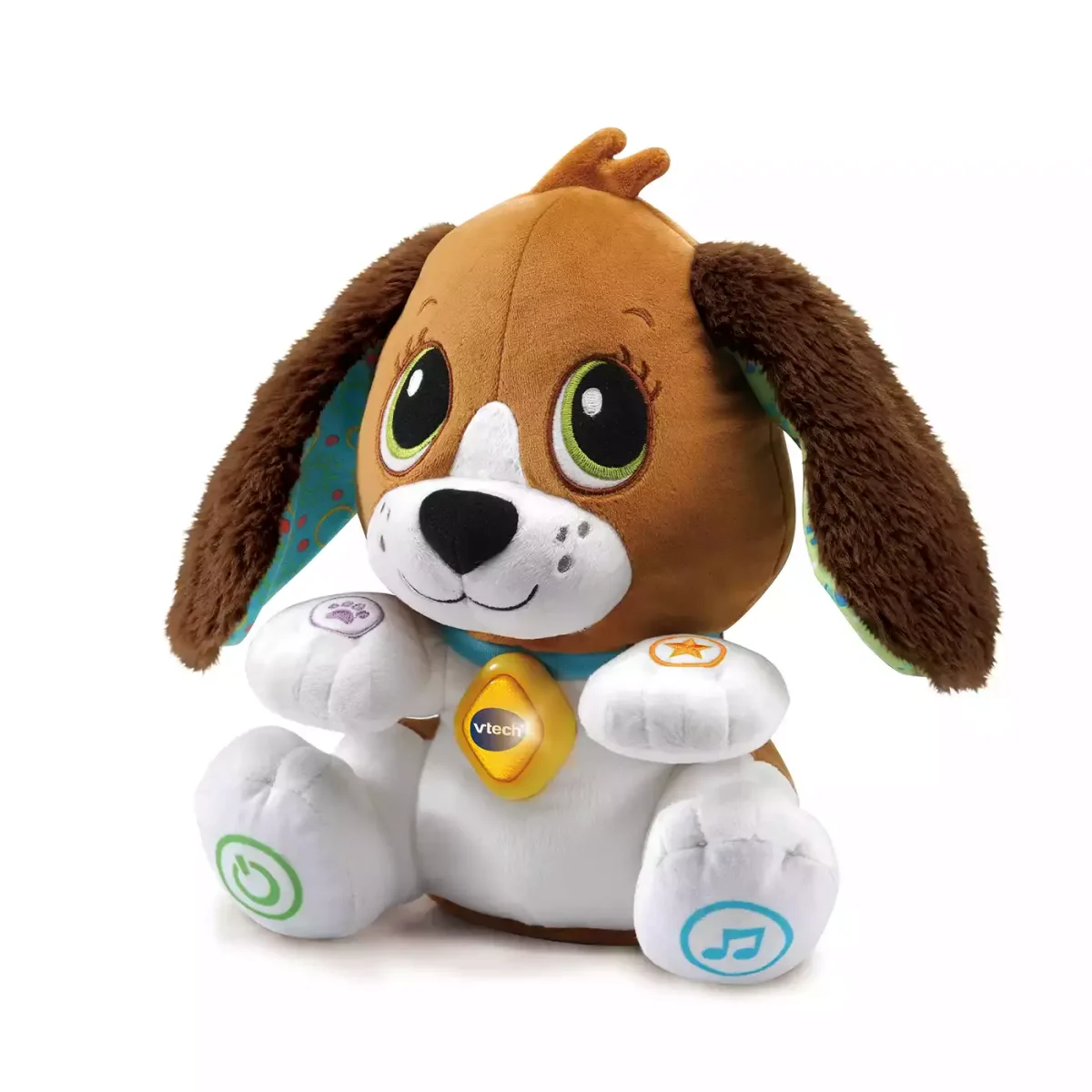 Mit dem süßen und vor allem praktischen Sprich-mit-mir-Hündchen von Vtech wird dein kleiner Schatz zum Sprechenüben animiert. Wenn das Hündchen mit ihm spricht, bewegt es den Kopf sowie die Ohren und gewinnt dabei die Aufmerksamkeit deines Kindes. In drei Stufen hilft das Sprich-mit-mir-Hündchen dabei, erste Wörter, Sätze und Zusammenhänge zu lernen. Dabei spricht es die Wörter und Geräusche deines Nachwuchs mit witzigen Stimmverzerreffekten nach. Durch Tasten an den Pfoten und am Halsband bringt das interaktive Hündchen zudem Buchstaben, Zahlen und das Erkennen von Emotionen näher.