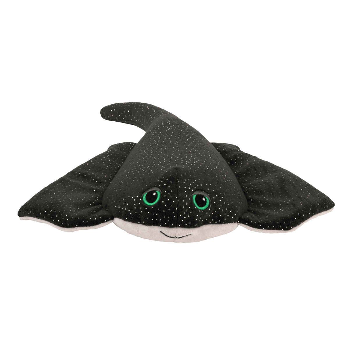 Einfach mal abtauchen! Mit diesem freundlichen Rochen kann man wunderbar auf Reisen gehen. Er begleitet deinen kleinen Schatz wohin er auch geht, lädt zu fantasievollen Traum-Reisen, auf spannende Unterwasser-Abenteuer ein oder ruht sich auf dem Bauch liegend aus. Er verbreitet behaglich nach Lavendel duftende Wärme und hat flauschig weiches Glitzer-Fell.Mit nicht herausnehmbarer Hirsekorn-Lavendel-Füllung.