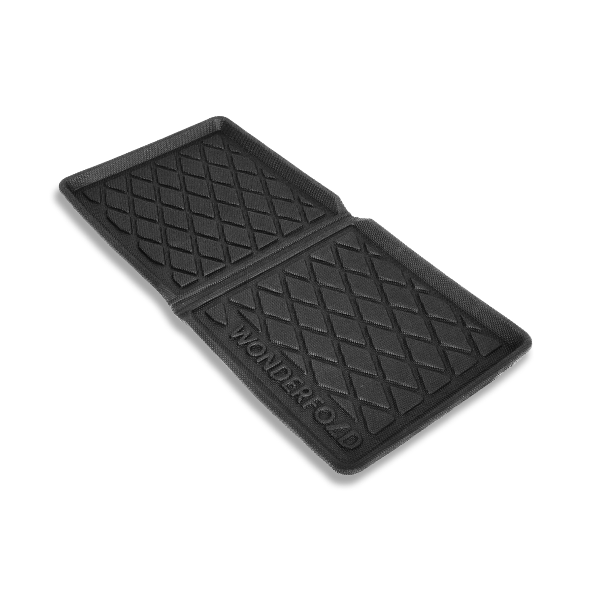 Die Allwetter-Bodenmatte von Wonderfold eignet sich ideal für den W2 KinderVan und bietet eine zusätzliche Schutzschicht, indem sie einfach auf die Original-Bodenmatte gelegt wird. Außerdem ist die Matte leicht zusammenklappbar, wodurch sie sich bequem verstauen lässt.