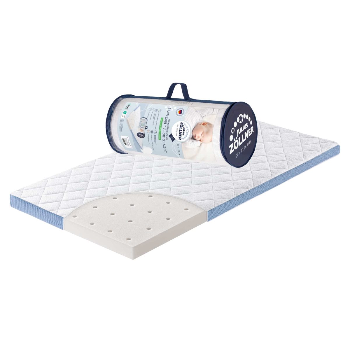 Die Travelsoft Flow Select Reisebettmatratze von Zöllner verfügt über vertikale Luftkanäle und sorgt so für ein optimales Schlafklima. Der weiche Bezug aus Tencel-Fasern macht die Matratze angenehm weich.